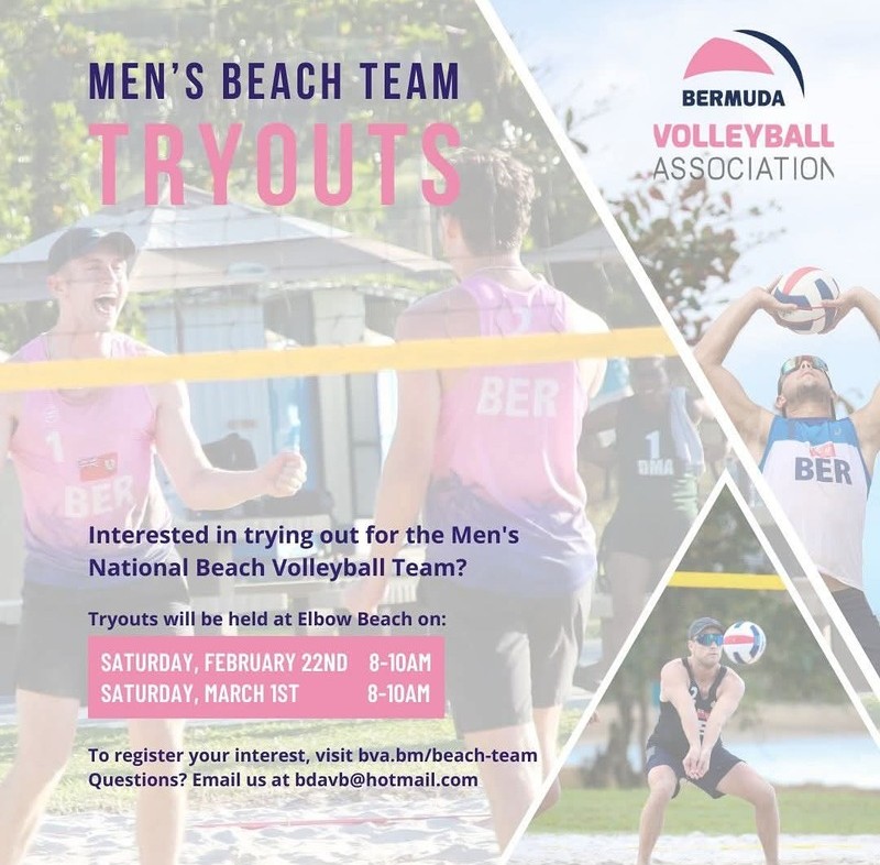 The Bermuda Volleyball Association will hold men’s beach team try-outs at Elbow Beach on Saturday [February 22] and March 1.