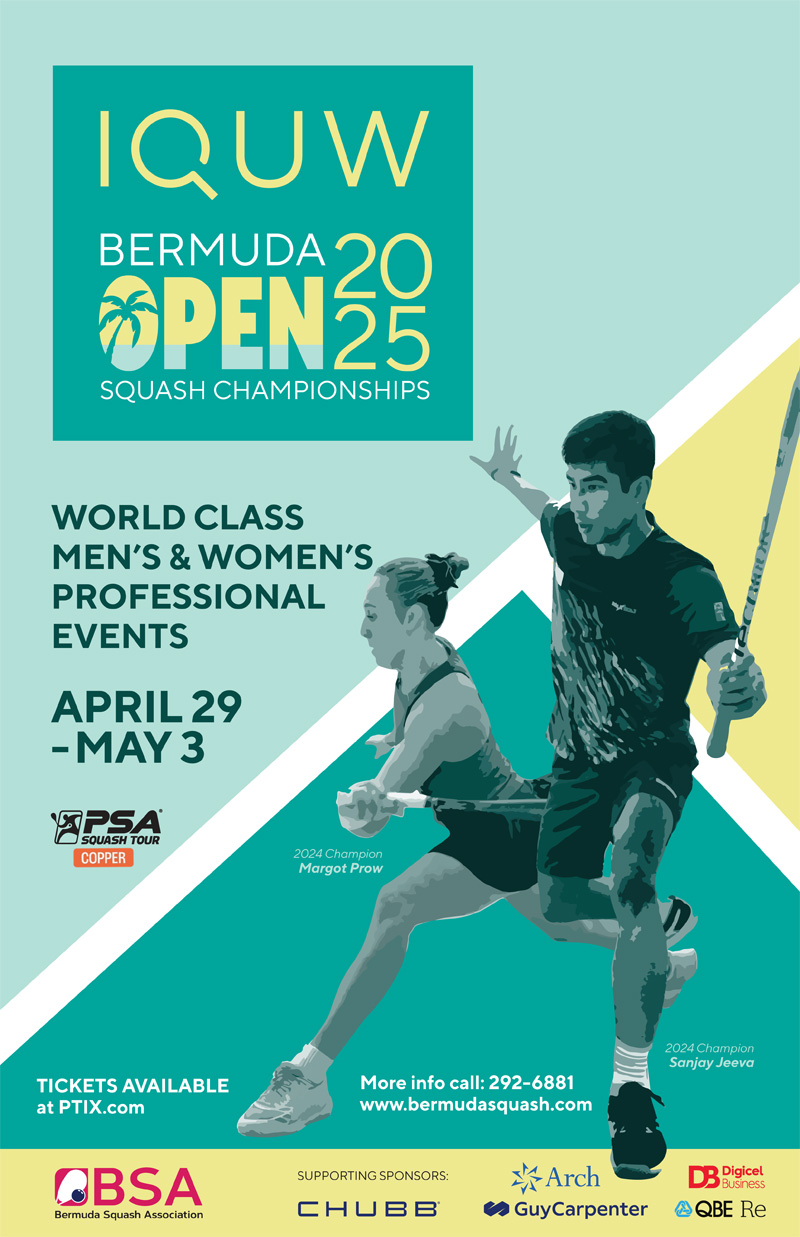 A spokesperson said, “Bermuda is set to host the highest level of professional squash seen on the island in nearly two decades as the IQUW Bermuda Open Squash Championships return from April 29 to May 3 at the Bermuda Squash Association in Devonshire.