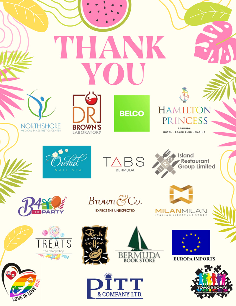 The spokesperson said, “Love is Love Bermuda would like to thank all the establishments who donated prizes, including Northshore Medical & Aesthetics Center, Hamilton Princess & Beach Club, BELCO, Island Restaurant Group [Barracuda Grill, Bolero Brasserie, Brew, Frog & Onion, Hog Penny, and Pickled Onion] TABS Bermuda, Milan Milan, Orchid Nail Spa, Europa Limited and Brown & Co., as well as special shoutouts to Casey’s Lounge, B4theParty Treats Limited, Rock Island Coffee, and Bermuda Bookstore.