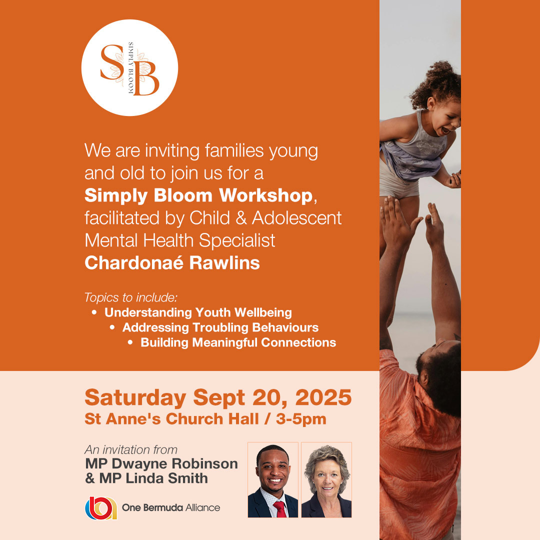Mr Robinson saying: “Given the hardships we all see daily in Bermuda, Linda and I are honoured to bring Ms Rawlins’ Simply Bloom Workshop to the community on Saturday. Families young and old are invited to attend the workshop, which will cover Understanding Youth Wellbeing; Addressing Troubling Behaviours, and Building Meaningful Connections.”