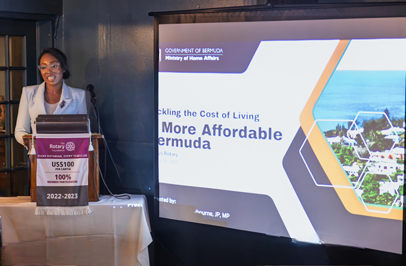 The Minister of Home Affairs Alexa Lightbourne recently delivered a presentation to members of the Sandys Rotary Club, providing an overview of the Ministry’s mandate and highlighting the recently released Affordable Bermuda Agenda.