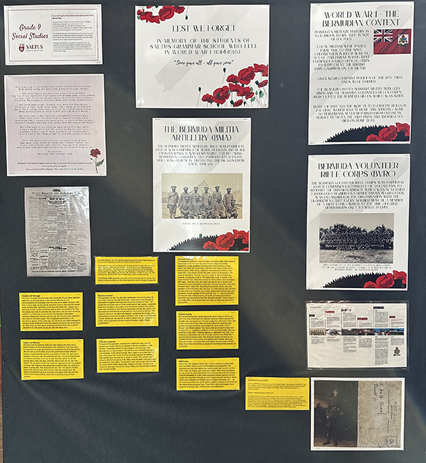 “For their final inquiry, students used a range of primary sources, including Commonwealth War Graves Commission documents, Ancestry.com records, archival Royal Gazette articles, enlistment papers, census data, and military files, to research the 14 Saltus alumni who served and fell during World War I. Their exhibit showcases these materials alongside students’ analyses to tell the stories of these former Saltus students with accuracy, respect, and historical insight.