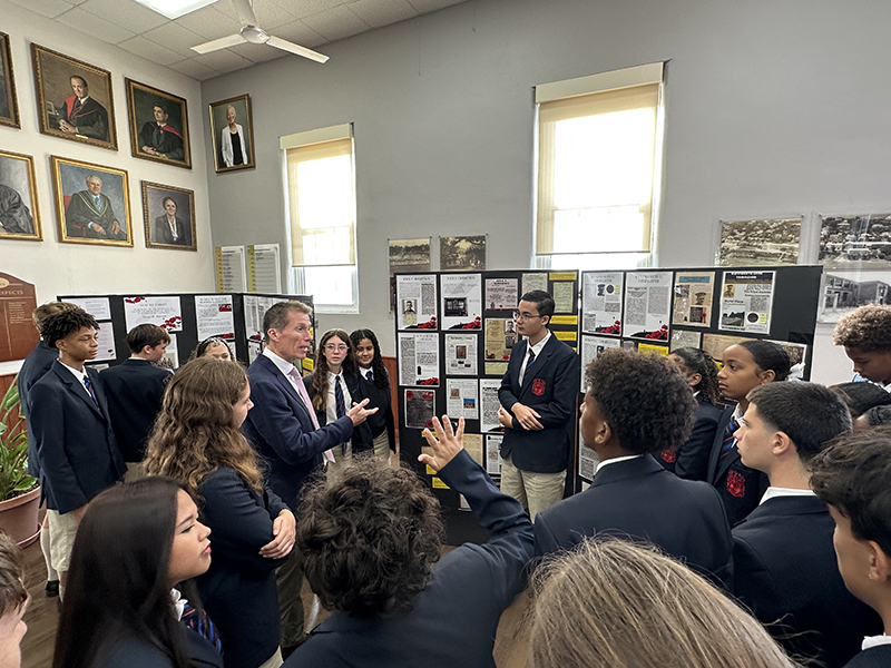 Saltus welcomed Governor Andrew Murdoch to campus for a special viewing of the Grade 9 exhibition highlighting alumni who served in the First World War.