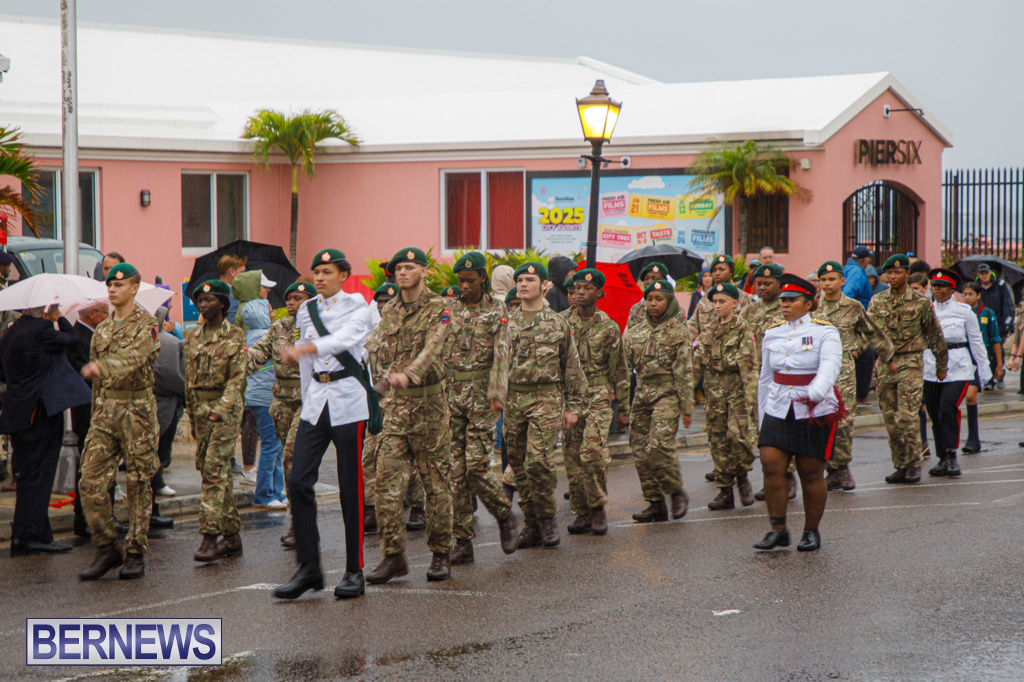 “Veterans or their representatives formed part of the parade, which also featured members of the Bermuda Police Service, the Royal Bermuda Regiment Association, the Bermuda Sea Cadets, the RBR’s Junior Leaders, and Bermuda Scouts.