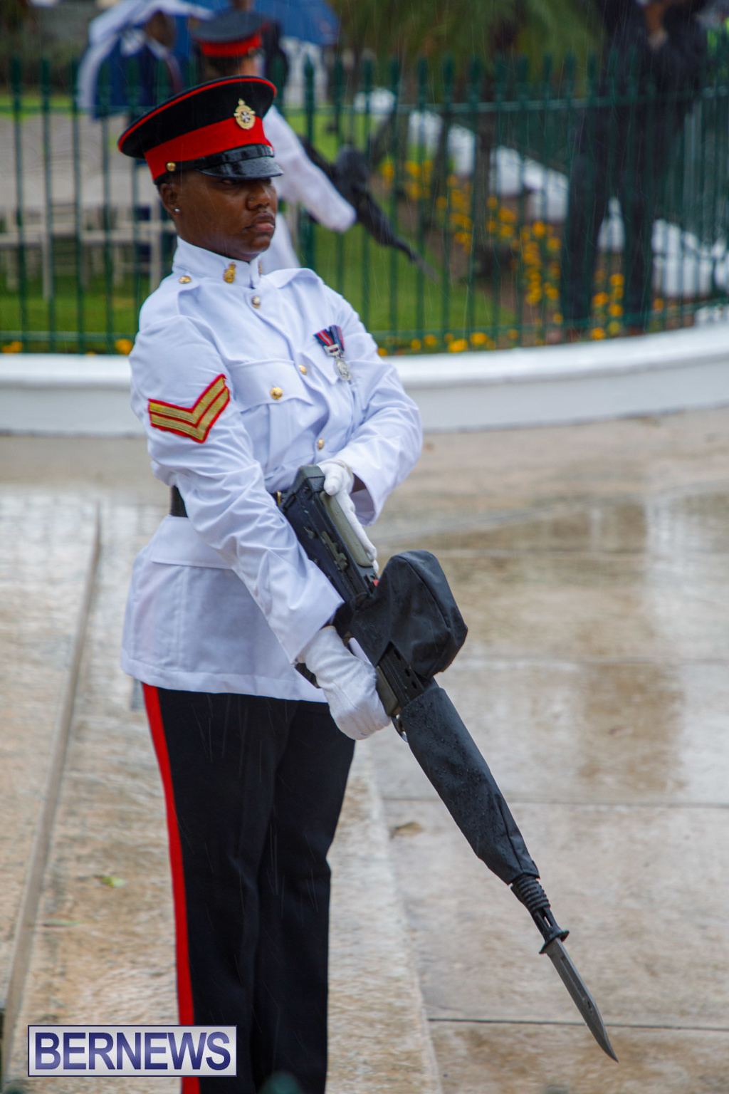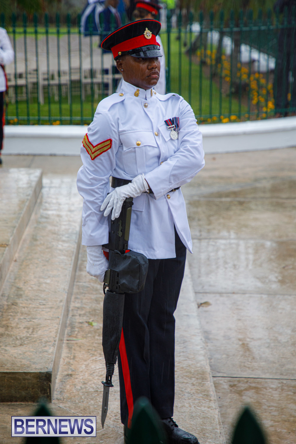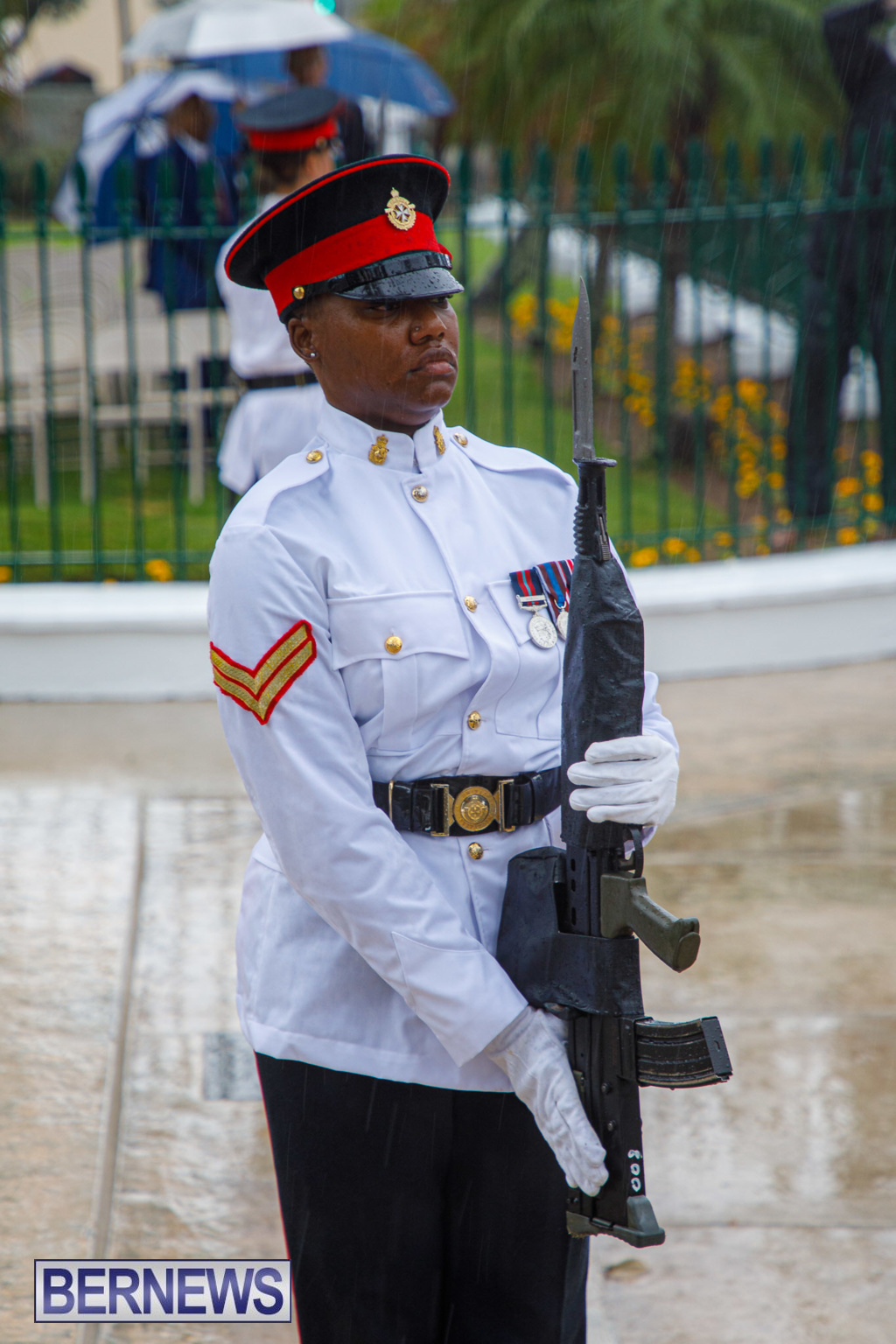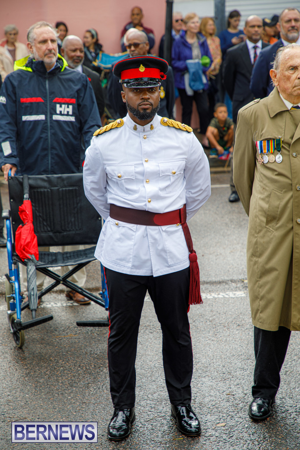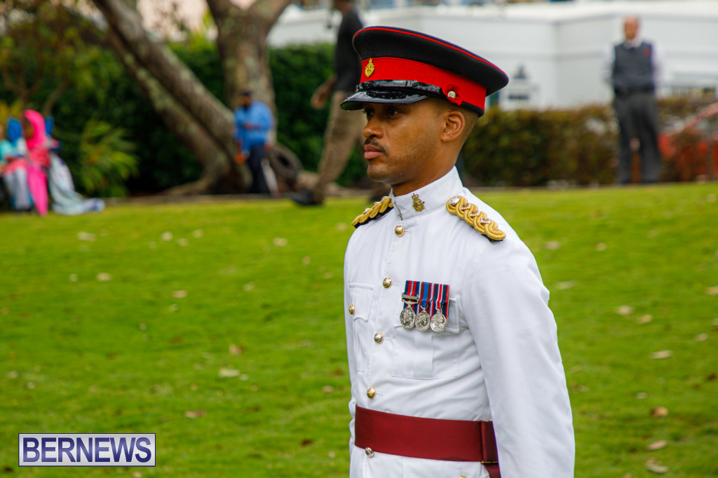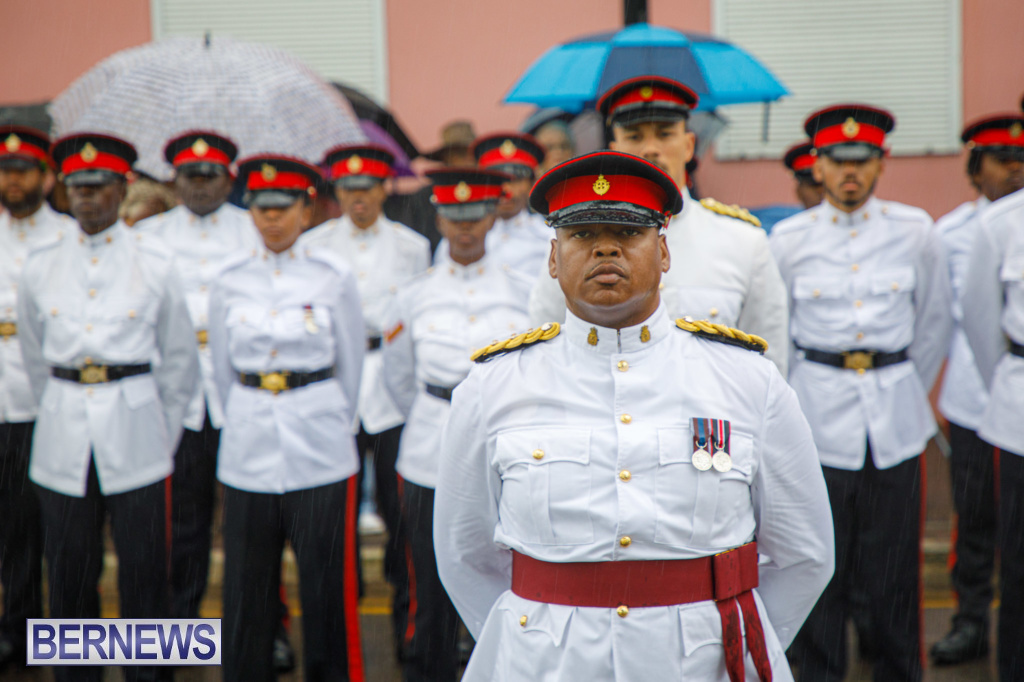 A spokesperson added, “Rodwell Wade – a former Sergeant in the Bermuda Regiment, where he played in the band – was among those on parade representing veterans.”