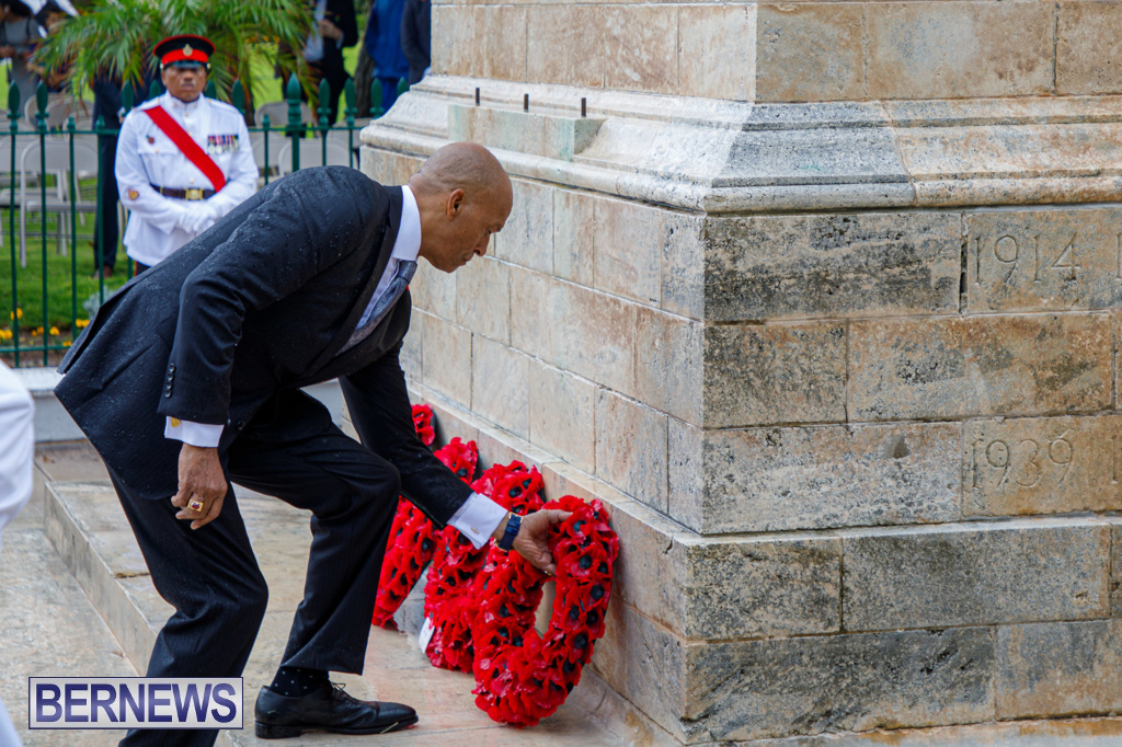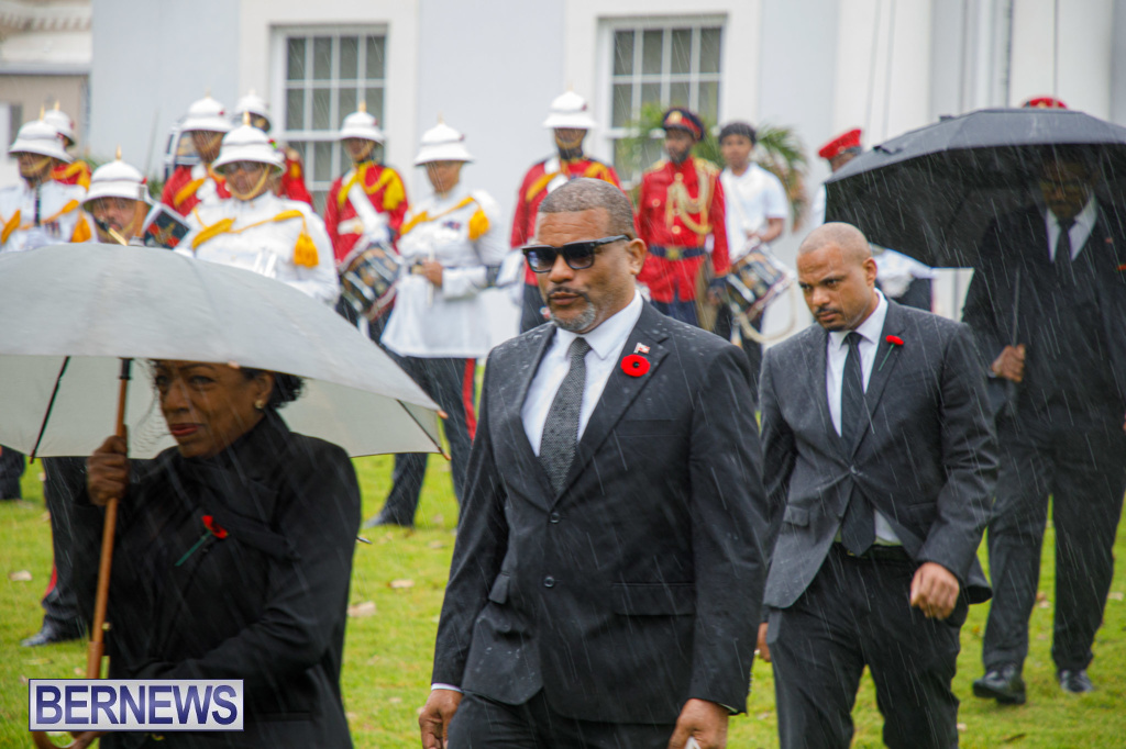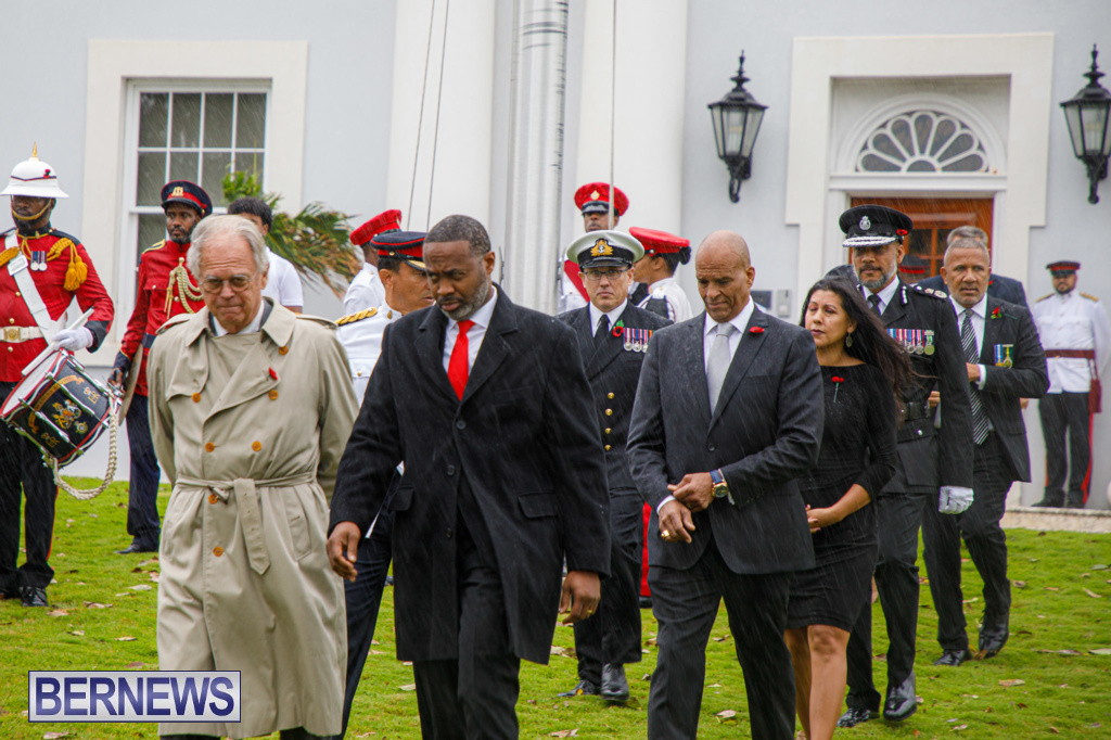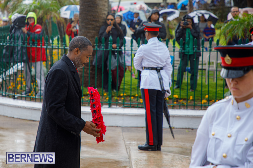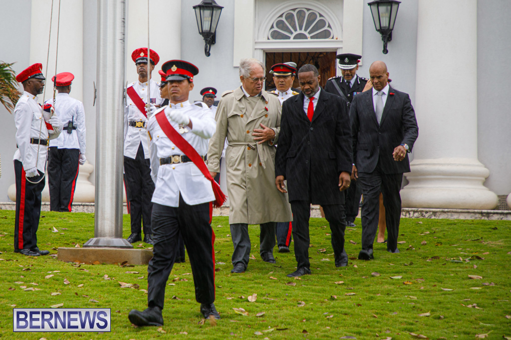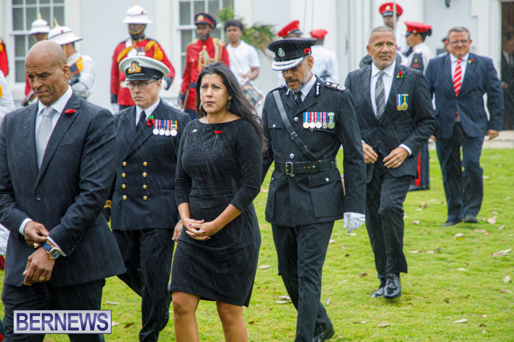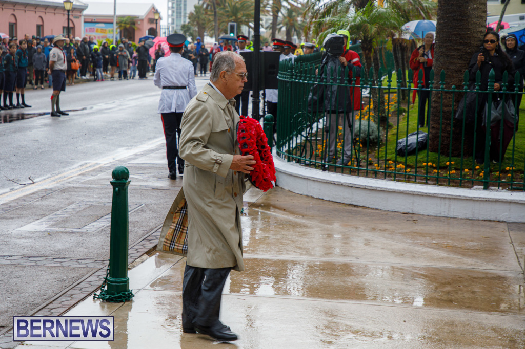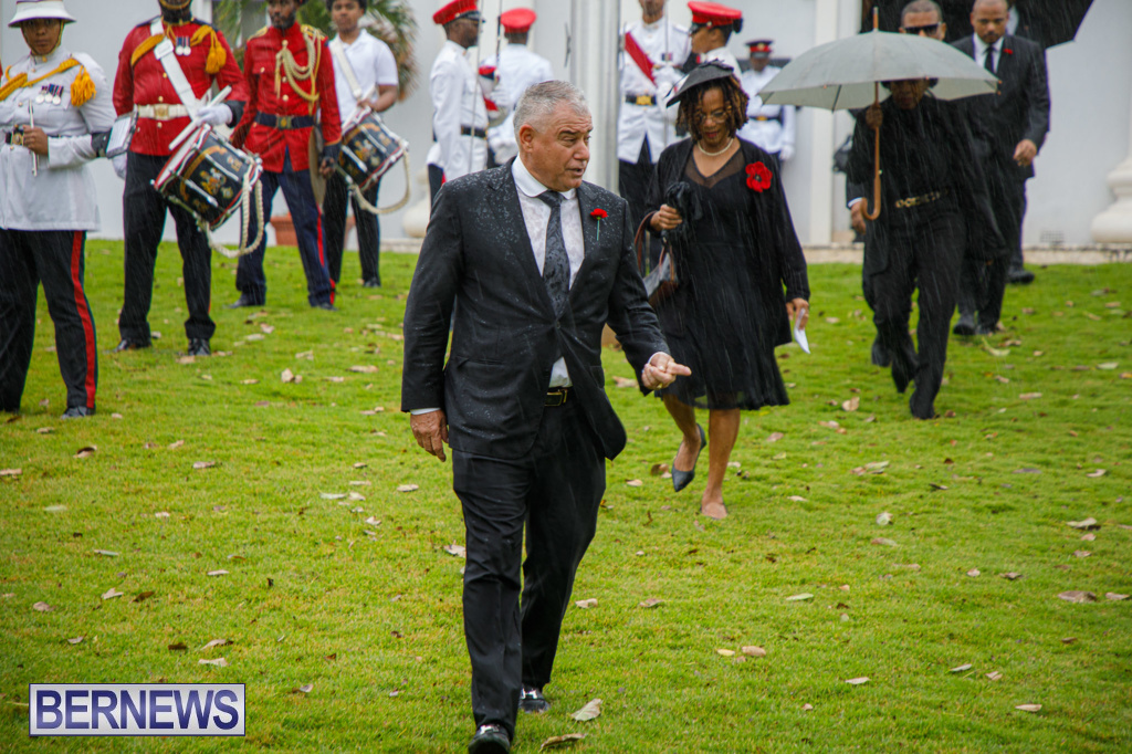 A Government spokesperson said, “Today’s observances honoured those who fought in the two World Wars and other campaigns of the Allied Forces. Against the backdrop of inclement weather, wreaths were laid at the Cenotaph by His Excellency the Governor, Andrew Murdoch CMG, Premier David Burt, JP, MP, and other dignitaries.”