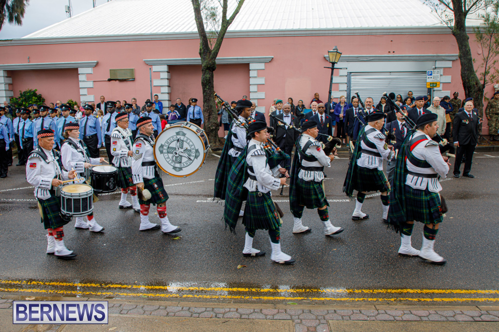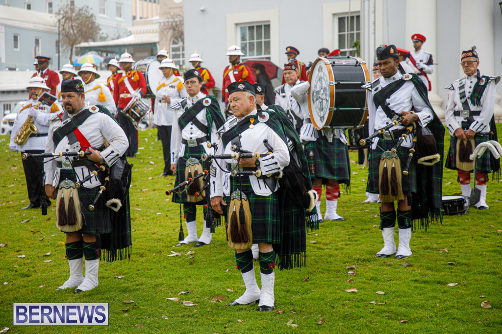 “Music was provided by the RBR’s Band and Corps of Drums together with members of the Salvation Army Bermuda Divisional Band, Somerset Brigade Band and the Bermuda Islands Pipe Band.