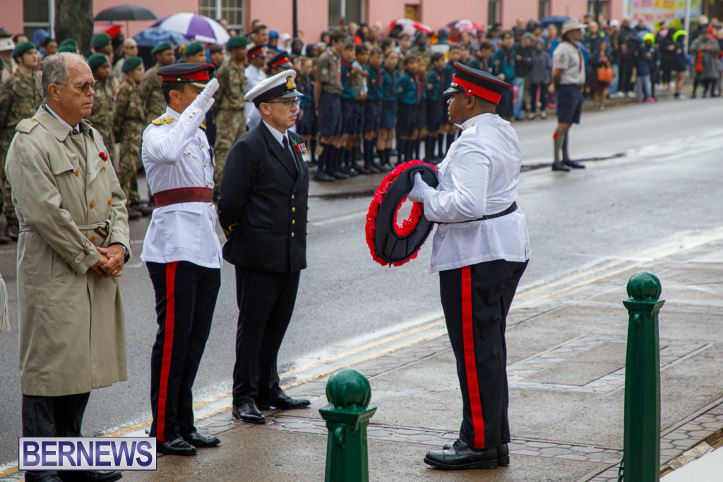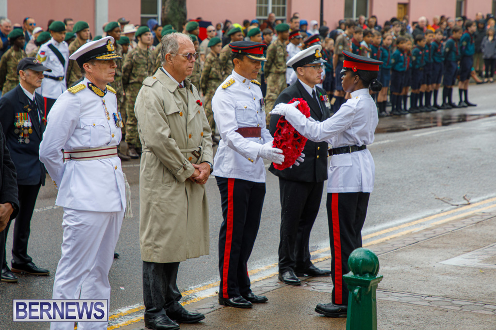 “The parade marched from the western end of Front Street towards the Cabinet grounds, where wreaths were laid at the Cenotaph by dignitaries including His Excellency the Governor, Andrew Murdoch, Premier David Burt, and the RBR’s Commanding Officer, Lieutenant Colonel Duncan Simons.