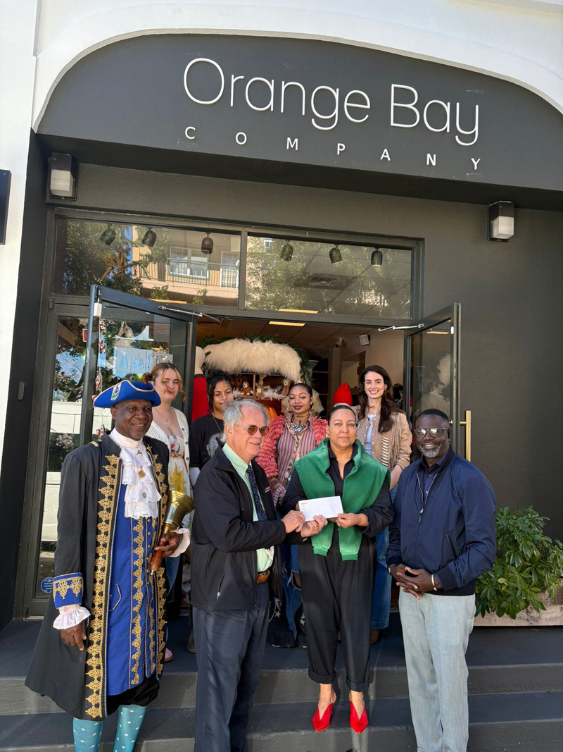 City CEO Dwayne Caines, Mayor Charles Gosling, Town Crier Ed Christopher, and members of the Orange Bay team