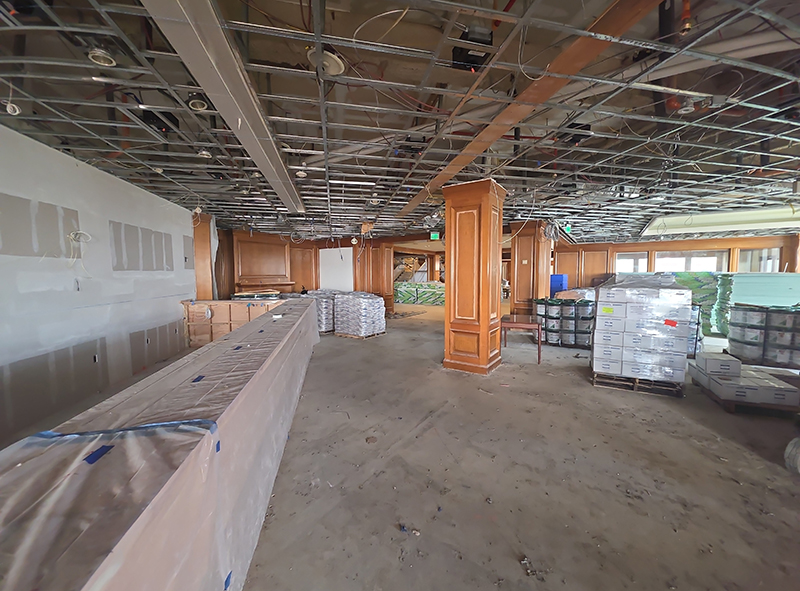 “Extensive mechanical work is taking place including the replacement of 17 air handling units. All units are on site with six completed and another three are actively being installed. Grease traps for the main kitchen and Wickets restaurant kitchen have been replaced and electrical and plumbing rough ins are in progress throughout the public areas. The Jasmine bar has been re-built, and mechanical, electrical and plumbing work is progressing.