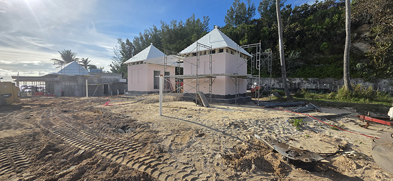 “At the Ocean club, all new interior and exterior walls have been framed. The existing roofing system has been repaired and new framing installed where required with the Bermuda roof boarding installation complete. Plaster work is complete on both the interior and exterior and painting has begun. The interior is being prepared for all new finishes and kitchen equipment installation.