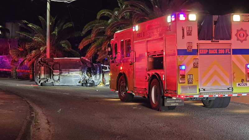 A police spokesperson said, “Shortly after 1:00 a.m. on Friday, 6th March 2026, police officers on mobile patrol came across an overturned vehicle on South Road near the junction with St. Paul’s Lane in Paget.