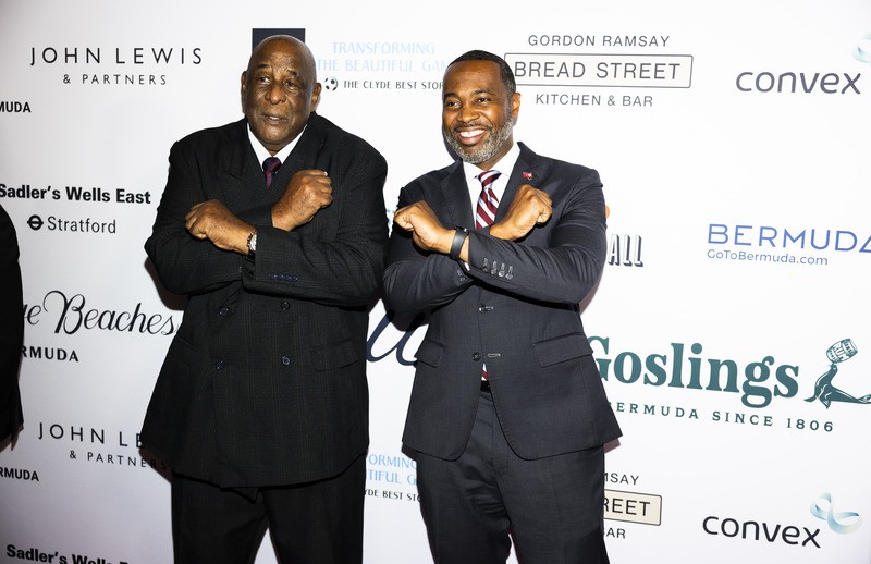 Football pioneer Clyde Best was joined by Bermuda’s Premier David Burt in London yesterday [March 25] for the premiere of a new documentary on the former West Ham United striker’s life and career.