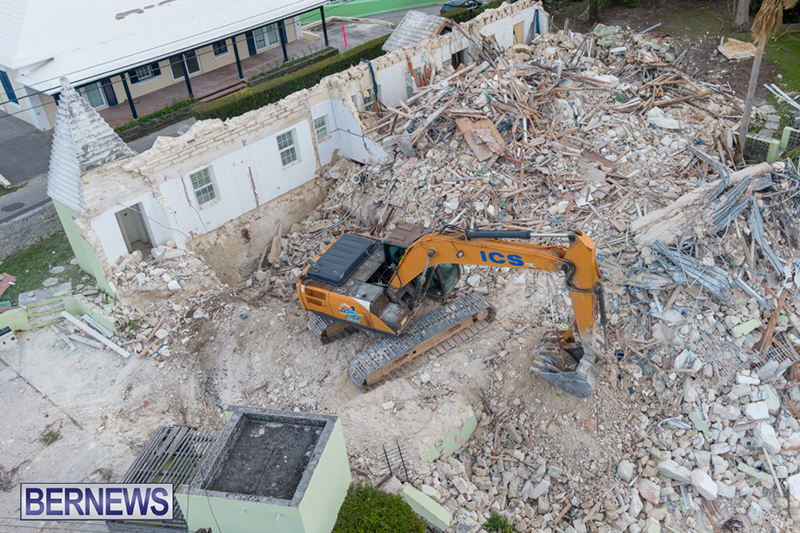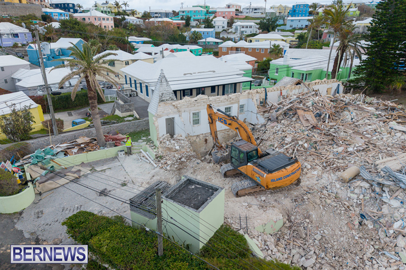 Demolition of Archlyn Villa on St John’s Road in Pembroke has now begun, following the earlier announcement by the Bermuda Hospitals Board.
