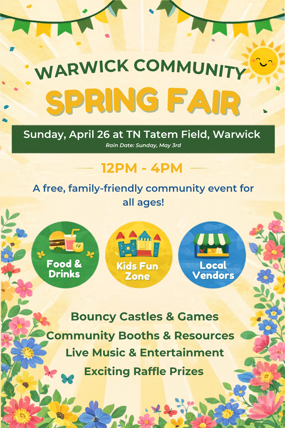 “On Sunday, April 26 from 12:00 PM to 4:00 PM, the Warwick Community Spring Fair will take over T.N. Tatem Field for an afternoon filled with food, music, activities, and community spirit. And the best part, it’s completely free to attend.